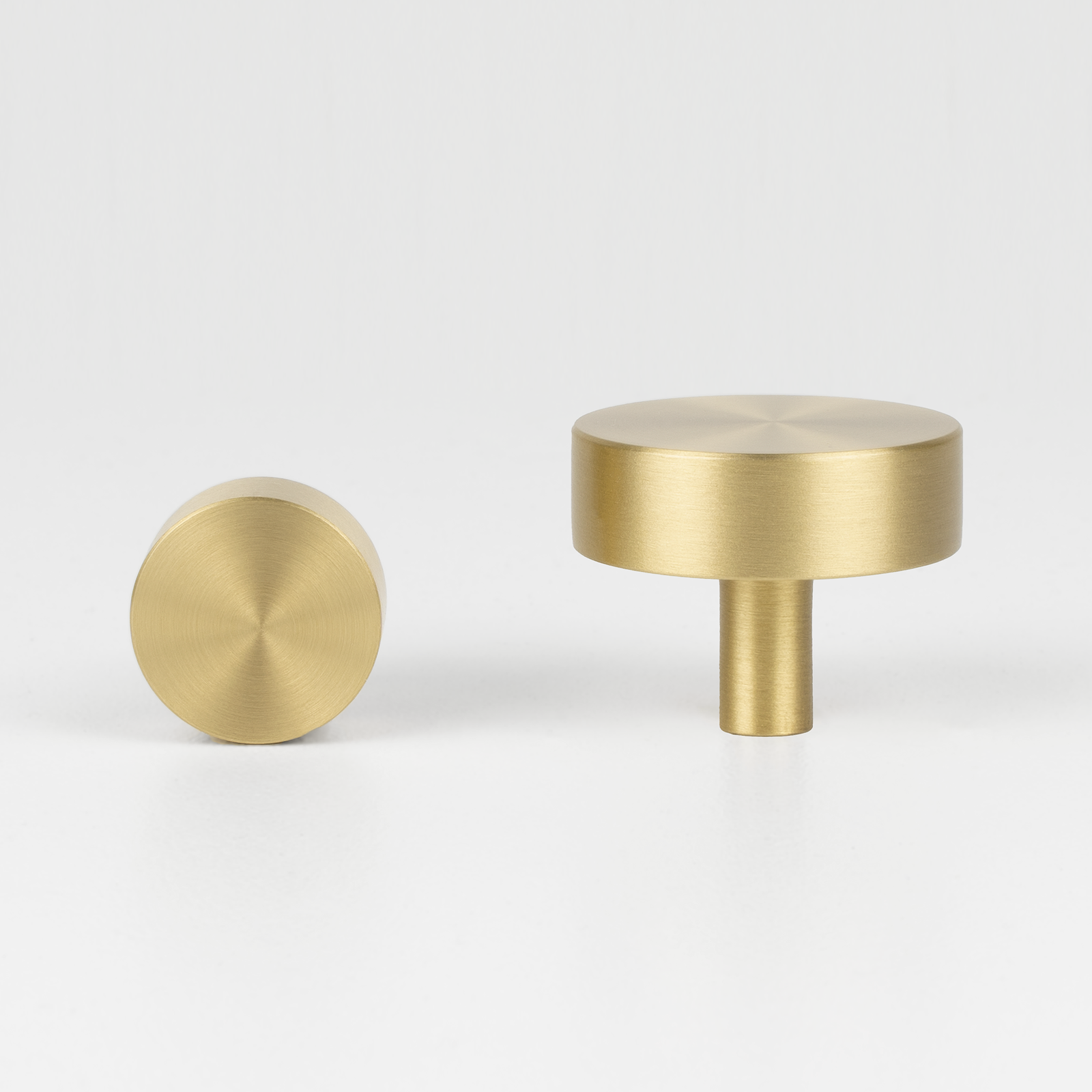 Our collection of cabinet knobs includes solid brass round knobs, and solid brass curve pulls. It comes in a range of finishes such as such as brushed brass, matte black and brushed bronze.